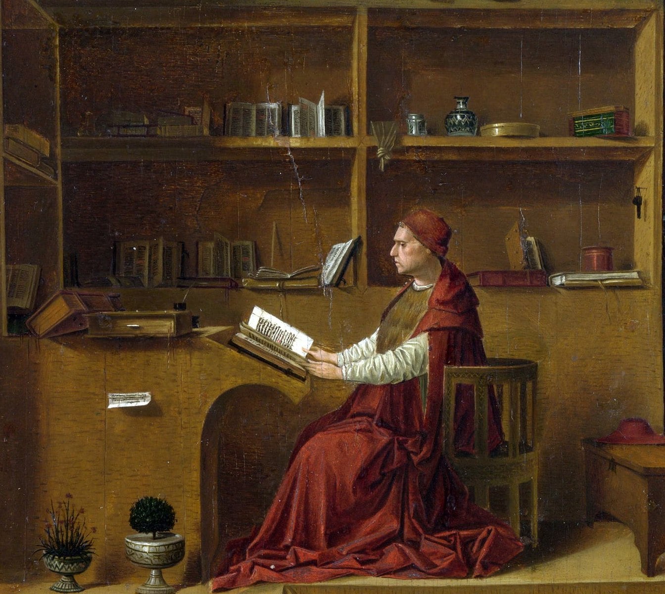 Antonello da Messina’s presence was recorded in several of Italy’s most artistically important locations during the 1460s and 1470s. Although he was based in Messina for most of his life, there is evidence that he traveled to Venice and Milan, learning from the other prominent painters there. Most significant among these was Giovanni Bellini. Da Messina and Bellini seem both to have benefitted from each other’s company: Antonello da Messina gained a better understanding of the human form from Bellini, who had been influenced by the sculptures of his father, Gian, while it is likely that Bellini adopted the technique of oil painting after his meeting with Antonello.