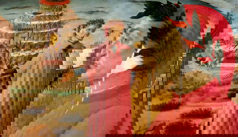 Brought to a head by conflict over geographical borders, the Guelph-Ghibelline conflict massively impacted Dante’s philosophy. The poet was a participant in the final battle which shattered the Guelph faction. The Black Guelphs were staunch supporters of the Pope, but the White Guelphs, with whom Dante was involved, sought to weaken Florentine ties to Rome. In 1302 Dante was exiled from Florence and told he would be sentenced to death should he return.