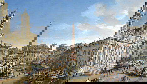 The Egyptian obelisk that currently stands on the Piazza Navona is an example of this. It was commissioned by Domitian to be crafted in Egypt. He gave explicit direction that both its shaft and base were inscribed with Middle Egyptian hieroglyphics. The hieroglyphs on the shaft proclaim the Roman emperor to be the “living image of Ra.”