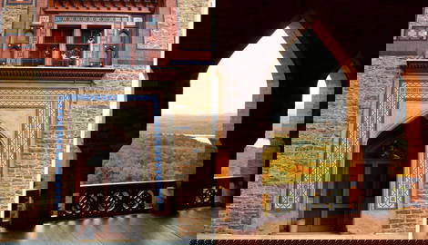 It wasn’t until the late 1860s, after the Churches had weathered the Civil War, traveled Europe and the Middle East, and lost two young children, that they created Olana. This elaborate home, whose name refers to an ancient Persian castle, was inspired by their recent trip to the Holy Land. They had visited Jerusalem, Lebanon, Jordan, Syria, and Egypt. Both deeply religious people, Frederic and Isabel Church have been seeking to bring a little bit of Jerusalem home with them. Although the Churches were devout Christians, they felt no hesitation to base their house on Islamic precedents.