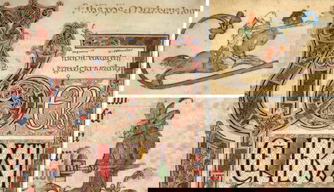 In medieval manuscripts, animal images appear most frequently as decorative details with little relationship to the meaning of the text. They occur in the ample white space, or within decorated capital letters, frames, borders, and more. Humans and human/animal hybrids called “grotesques” or “chimeras”, as well as foliage appear here as well.