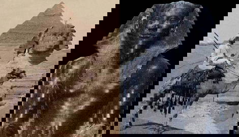 The local people called the Sphinx Abu al-Hawal, literally “The Father of Terror”. For centuries, only the monstrous head surfaced from the sand of the desert, and travelers from all time periods found it haunting. In the 19th century, excavations uncovered the entire body, showing that it was an enormous monolith carved directly from the bedrock of the Giza plateau, depicting a lying lion with an anthropomorphic head wearing a nemes wig.