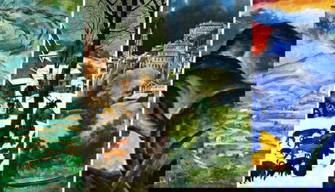 This is a more emblematic than a realistic view of the city. El Greco seems to be offering us a symbolic representation of our relationship with the divine, as seen through nature; the overwhelming clouds, and flowing countryside. We feel the clouds are close to unleashing a storm, a presentiment which already has the city crawling away, down the hillside. This painting beautifully expresses the symbolic meaning between the city, as made by man, and the power of the Divine.