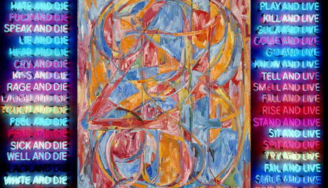 Bruce Nauman was born in 1941 in Indiana, USA. The premise of Bruce Nauman’s One Hundred Live and Die is remarkably simple, yet the work has graced some of the world’s most prominent galleries. Nauman’s neon text stands as one of the most significant works of art that emerged in the 1980s. The artist had already experimented with neon before making this piece but it surely represents one of the clearest expressions of his artistic identity.