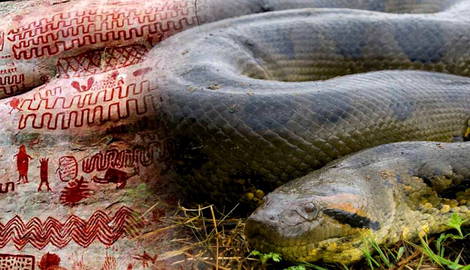 The most significant physical representations of this dual entity have been found in the Serranía del Chiribiquete, a mountainous region in the Colombian Amazon rainforest where ancient pictographs have been found. The anthropologist Castaño-Uribe has described the pictographs as representing anaconda-canoes over which human beings stand and raise their hands to the sky. This suggests a shamanistic relation between veneration practices and the sacredness of the anaconda as one of the most important entities of the Amazon ecosystem.