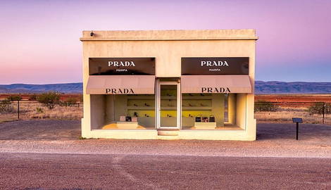 Prada Marfa looks, at first glance, like a small Prada store in the middle of the desert. However, it is actually a permanent sculptural installation. Created by Michael Elmgreen and Ingar Dragset in 2005, the would-be shop has become a popular tourist attraction for taking photos. Visitors cannot enter the sculpted store but can look through the glass windows at the real Prada items on display from the 2005 fall collection.