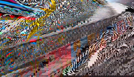 The East Side Gallery is the prominent modern exhibition of the Berlin Wall today, located on the Spree River in what was once East Berlin. The 1.3-kilometer-long gallery is one of the world’s largest open-air art galleries and one of the premier tourist attractions of Berlin.
