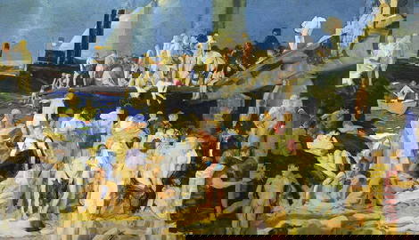 Whereas earlier Realist painting was much more composed and focused, the canvases of Ashcan artists tend more to the messiness of the real. We see bustling streets, dim and uncertain interiors, all teeming with bodies piled over each other. This effect can be observed in George Luks’ Hester Street, a picture which seems to have no immediately discernible action or subject beyond the overwhelming crowd which extends across the picture plane.