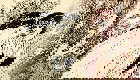 Oscar Wilde discovered Beardsley’s talent after seeing Beardsley’s work in the Yellow Book and asked him to illustrate his drama, Salome. Beardsley’s drawings for Salome displayed delicate gradations of tones and explored much more disturbing themes than most of his previous works. The Climax, the famous image of Salome caressing the severed head of John the Baptist with a dark fascination that borders on desire, sparked a lot of controversial reactions from critics and amateurs alike. However, compared to the sexualized drawings rejected by the publishers, the canonical variant does not seem that obscene. Famous for his swooping lines and exaggerated depiction of emotion, Beardsley drew inspiration from Japanese woodblocks as well as the pseudo-medieval imagery associated with pre-Raphaelites.
