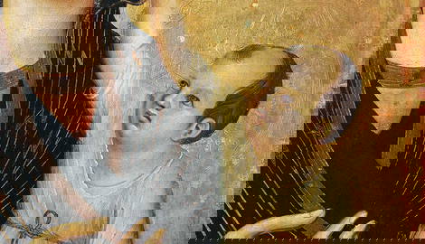 Duccio di Buonisnsegna’s Madonna and Child painted in the late 13th century, is a more naturalistic scene. Mary looks lovingly at her child, her face soft and tender. Even though his face resembles a weathered middle-aged trucker, baby Jesus is softer with chubby cheeks and an innocent gaze. Baby Jesus stares into his mother’s eyes and gently plays with her veil, different from the other baby Jesus depictions. In Buonisnsegna’s work, there is more of an effort to create a naturalistic scene.
