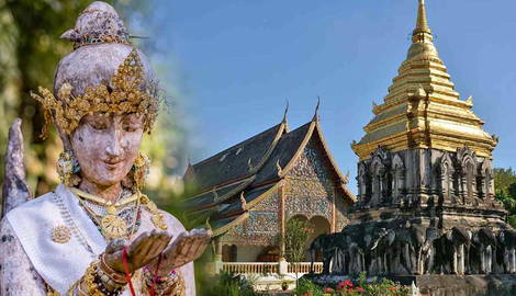 The complex’s most noticeable architectural feature, and oldest part, is Chedi Chang Lom, with fifteen life-size elephant-shaped buttresses holding up the base made of stucco and brick.
