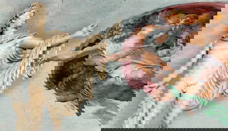 Classical themes were prevalent in painting during the Renaissance. While Catholicism remained a prominent subject, there was a rise in mythological details and narratives in works during the time. Sandro Botticelli’s The Birth of Venus (1484-1486) from the Early Renaissance pictures a naked Venus, a prominent goddess from Roman mythology (Greek Aphrodite) rising out of the sea.