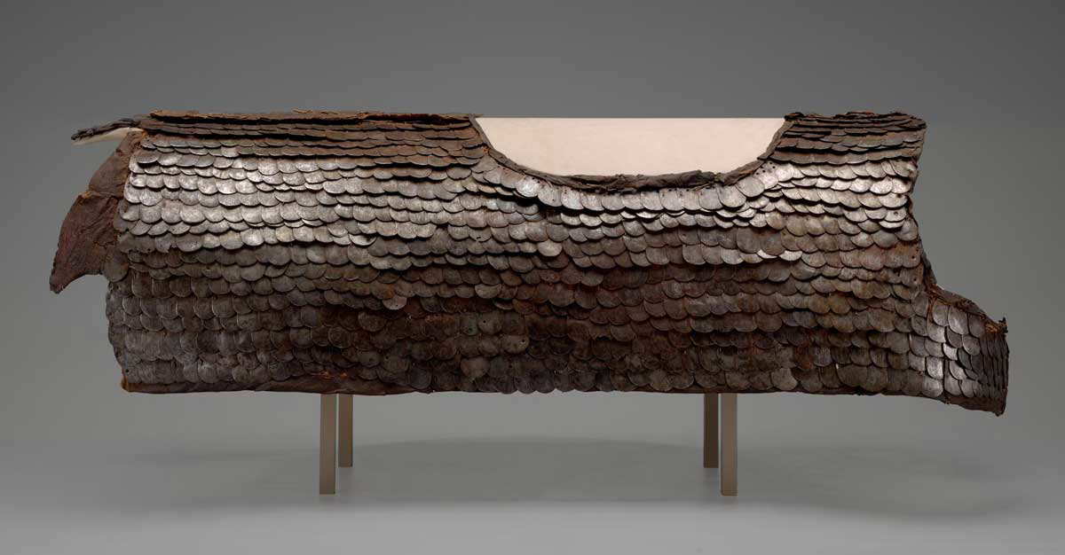Some of the most important archaeological finds from Dura Europos are of arms and armor from the 256 CE siege. These include examples from both the Roman garrison and the Sasanian besiegers. The most spectacular finds, however, are the horse armor and the Roman shields. During the 3rd Century CE, both the Romans and the Sasanians made use of heavily armored cavalry known as cataphracts. Both horse and rider were encased in armor so that they could charge directly into enemy formations. At Dura Europos, archaeologists uncovered a detailed graffito depicting a cataphract and two sets of horse armor. This armor was made from nearly 2,000 individual overlapping thin, scale-like plates bound together with wire. One armor is made from steel or iron, and the other is made from bronze. No other such armors have been recovered from any other site. These armors were in Tower 19 when it partially collapsed during the siege, which buried and preserved them.