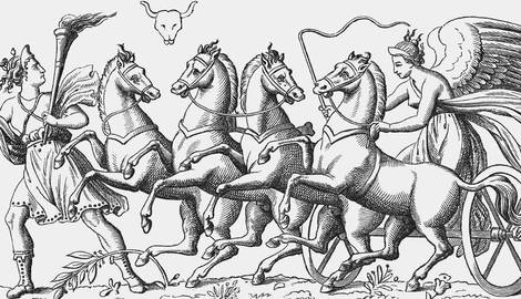 Zeus, in his effort to overthrow the giants, commanded Eos and her siblings, Selene and Helios, not to shine so that Gaia could not find the herb. Thus Zeus would be able to wage war on and destroy the giants. Eos is depicted on the Pergamon Altar, which depicts scenes from the Gigantomachy, riding a horse ahead of her brother Helios, a slain giant underneath the horse’s hooves.