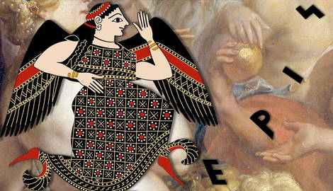 Eris was the personification of strife and discord in Greek mythology, said to delight in the slaughter of men and any kind of conflict. Her Roman counterpart was named Discordia, and in art, she was represented as a winged woman with dark, braided hair and hideous features. Her image was rendered on armor to intimidate anyone who looked upon it, such as on Zeus’ aegis or the shield of Heracles. Eris appears in relatively few myths and acts more as an achieved condition than an active character. When she does feature in stories, once discord has been created, Eris drops out of the story as a character and becomes the thematic representation of conflict.