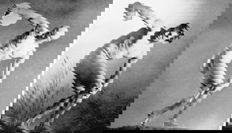 Olympia was filmed in 1936 by direct decree of the Führer, the same year that pornography was banned and that the Nazi state established a central office to combat homosexuality. Riefenstahl begins her film with a nude statue coming magically to life. It dissolves into a living athlete among the ruins of the Acropolis, centering around the famous Greek sculpture of the Myron Discobolus. Framing the idealized male nude as a spring of energy, this hard armored body (played by a famous German athlete of the time) self-anoints modern Germans as aristocrats of humankind (Hitler was personally obsessed with this statue and pursued the purchase of a Roman copy from Mussolini for years).
