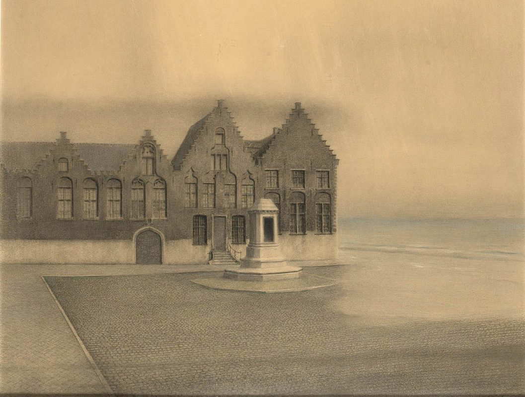 Between 1902 and 1904, Khnopff made a series of Bruges representations using pastel colors and pencils. We can see the city on a foggy day. The sea withdrew, and even Memling’s statue left its pedestal. These nostalgic illustrations represent the idealized past of his childhood city. Fernand promised himself not to ever set foot again in the town. His childhood souvenirs were strongly recorded in his memory. Yet, Khnopff went to Bruges for the 1902 exposition about Memling, one of the Flemish Primitives he admired. He wore tinted glasses and stayed hidden in his carriage so he would not have to look at the beloved but falling city.