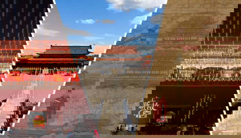 The Forbidden City is largely divided into three sections: the defenses, the Outer Court, and the Inner Court. The main gate of the Forbidden City is the 125-foot-tall Meridian Gate, a superstructure composed of five buildings, where the emperor issued imperial edicts. The Outer Court was where emperors used to attend grand state ceremonies and official functions, while the Inner Court was where they worked and lived.