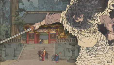 Izanagi lit a torch and saw that his wife’s body was already decomposed and maggot-ridden. In fear and disgust, he dropped the torch and fled the underworld, a wrathful Izanami at his heels. Upon reaching the entrance to the living world, he sealed it with a massive boulder and washed himself in a nearby river to purify himself, because cleanliness is of tantamount importance in Shinto belief, and being near the dead is considered impure. From his left eye came sun kami Amaterasu, from the right, moon kami Tsukuyomi, and from his nose, storm kami Susanoo. These three are considered some of the most important deities in Japanese myth.
