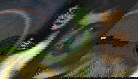 With this painting, Stuck came closer to images of the soul as seen in the works of Arnold Böcklin and Max Klinger or to the tradition of English Pre-Raphaelites. The biblical cherub appointed by God to guard the entry to Paradise is transformed into the ideal of an androgynous youth, considered the ideal embodiment of a being raised above humanity. In the background, the colors burst out to show Paradise as an ethereal realm beyond visible reality.