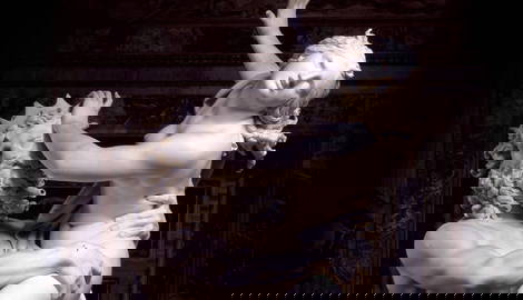 In the stunning three-dimensional sculpture, Apollo and Daphne, Gian Lorenzo Bernini managed to capture more than just a single moment in time. The myth comes alive as the viewer moves around the piece. Daphne slowly turns into a laurel tree the further one advances. As Apollo grabs her around the waist to stop her, her hair flings around her with a motion and lightness that Bernini himself claimed he never again quite attained.