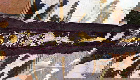 So-called ‘Figure Eight’ shields are known from the 15th century onwards. This unique design is synonymous with Mycenaean Greek armor and consists of two pieces of curved wood with various supporting elements. The gaps were then filled with wicker before the layers of ox-hide were added. The three-dimensional curves of this shield provided a large internal space, and seal depictions show it could almost ‘enclose’ the bearer. It provided greater protection than a rectangular or flat shield and most Greek armor. Archaeological remains of this type may be limited to a group of copper fittings for leather from Knossos. However, the design is well-known from martial scenes, and individual depictions, on frescoes, seals, and pottery vessels. Figure Eight shield imagery is known from the palaces at Tiryns and Pylos, and small votive examples are also known, suggesting the objects had prestigious ritual associations.