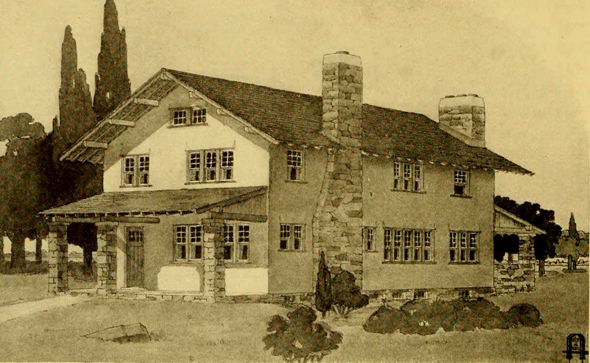 Stickley first explored interior design and architecture while remodeling his family’s Syracuse, New York home after a fire. However, his personal project quickly became a new business venture when he started including house designs in The Craftsman. The earliest drawings were by Stickley himself, who had no architectural training and focused primarily on the interior design aspect. Subsequent designs were by architects like Ernest G. Dietrich and Harvey Ellis, the latter of whom also designed Craftsman furniture. In 1903, Stickley founded the Craftsman Home Builders’ Club, which made available to subscribers free plans for more than 200 homes. These so-called Craftsman homes varied in design, size, and inspiration, but they were mainly modest in size and intended for middle-class families. Most could be constructed for $2,000-$5,000 by local contractors.