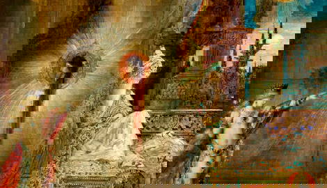 In The Dream of an Inhabitant of Mongolia, Moreau’s intricate, gold-and-jewel-toned style truly shines – as does his talent for rendering gorgeous, richly-patterned textiles. The painting is also significantly brighter and more playful than the artist’s typically darkened, gloomy scenes.