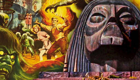 Now though this is most distressing to the Time Traveller as a 19th-century Victorian humanist, his most immediate concern is that his precious Time Machine has vanished. On return from one of his explorations, he’s horrified to discover his ride has been somehow removed. Once parked outside an immense marble statue of a reclining Egyptian-styled sphinx, now he suspects it’s been dragged inside the statue’s bronze pedestal. But by whom? Almost certainly the Morlocks.