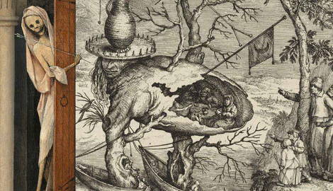 In Death and the Miser Bosch might have been wrongfully credited for a drawing that his follower may have done. One detail that indicates this is the under-drawing of the painting showing death’s arrow being shorter than the sketch. The original illustrator also added details to the drawing such as the orthodox cross. Even if Bosch didn’t draw this piece on his own, it was still used as the outline for the painting he did in fact make. The scene shows a miser in bed as death approaches while an angel guides the targeted one to look at the crucifix in the window. Bosch constantly explored themes of good versus evil in his artworks. Paradoxical images of demons and rosaries are present. Some of the inspiration for the piece came from Ars moriendi, written works related to Christian ideology about how to live and die.