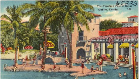 The Venetian Pool in Coral Gables, is a historic public swimming facility renowned for its unique origin and design. Originally a coral rock quarry, it was transformed in 1924 into a Mediterranean-inspired oasis by artist Denman Fink and architect Phineas Paist under the vision of city founder George Merrick. The pool features waterfalls, grottos, and a scenic bridge.