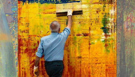 In the first stage of making his abstract paintings, Richter creates elements of detailed underpainting in wet oil paint which will later be completely obscured with many layers of randomly applied color. He works with a variety of tools including sponges, wood, and strips of plastic to apply the color. But since the 1980s he has been predominantly making his abstract paintings with a giant extended squeegee (a long strip of flexible Perspex with a wooden handle), which allows him to spread the paint across huge supports in thin, even layers with no lumps or bumps.