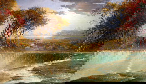 Active for most of the 19th century, the Hudson River School celebrated the American wilderness in landscape paintings of American art. This loose movement depicted ordinary rivers, mountains, and forests, as well as major monuments like Niagara Falls and Yellowstone. The associated American artists painted local scenery for its own sake, rather than as part of a wider narrative. This tied in perfectly with the early American idea that the nation’s wilderness was as worthy of celebration as the very best of what Europe had to offer.