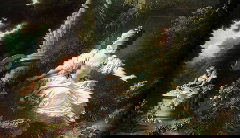 The light gives the mistress a seductive glow, making her the object of enticement as it filters through the trees. Her husband being covered in shadows conveys his own ignorance about his wife’s affair with de St. Julien. Fragonard romanticized unscrupulous dalliances and adulterous relations often in his early works. Such amorous subjects were frequent during the French Rococo art. Fragonard did not invent the depiction of cheating in art but he certainly made it something worth daydreaming about.