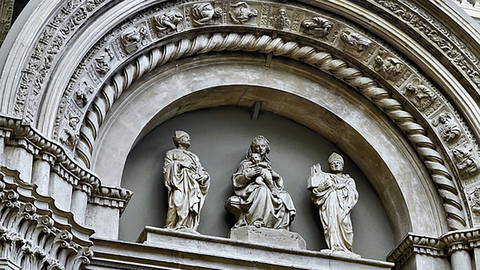 In 1425, Jacopo della Quercia had designed the magnificent arched entrance-way to the church of San Petronio in Bologna. The work was completed 13 years later, and is considered another one of his masterpieces. Carved into the columns are nine busts of Old Testament prophets and five biblical scenes.