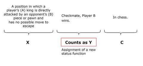 To better understand the structure “X counts as Y in C” we first need to revisit a distinction found in Searle’s Speech Act Theory: that of the regulative and constitutive rules. He writes: