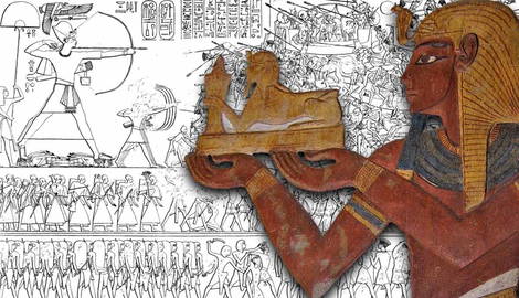 In year eight of Ramesses’ reign, the Sea People attacked on two fronts: one group moved by land toward the Delta from the northeast on their way from battles in Palestine, and the other moved via ships to the main mouth of the Nile. Ramesses prepared by issuing a nationwide conscription and sending these men to the mouth of the Nile, while the trained army met the Sea People at the Delta.