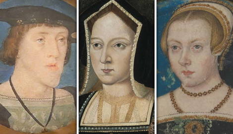 This is a page from a book that was published in 1858 by Caldesi & Montecchi. It is an early photograph of five miniature portraits from the Tudor era, one of which was painted by Lucas Horenbout, and is the miniature copy of the portrait of Catherine of Aragon, in which she is dressed in black and holding a monkey in her arms. In the miniature, the portrait is mostly the same, except for a lighter background to make the small figure of the Queen stand out on such a tiny canvas. Miniatures were small, personal paintings that award modern viewers a glimpse at those who lived before us in tremendous detail. They have fascinated viewers through the centuries and will continue to fascinate into the future.