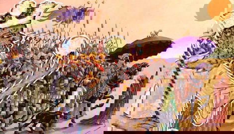In 1324 CE, Musa departed for his grand pilgrimage to Mecca, the sacred center of Islam. The pilgrimage procession consisted of as many as 60,000 people, although more conservative estimates place the number at around 15,000. This included the Mansa’s servants, enslaved people, soldiers, and prominent members of the royal court, including the Mansa’s wife. It is stated that 500 slaves carried staffs of solid gold, and the Mansa’s servants wore robes of silk. The caravan also included over 100 camels, each supposedly carrying over 200 pounds of solid gold.
