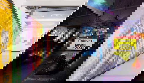 Mike Kelley’s work Pay for Your Pleasure consists of 42 colorful banners of famous historical figures and artists like William Blake and Oscar Wilde. The images were made by a commercial artist and are all accompanied by a quote voiced by the person who is depicted. The quotes link art to crime. They refer to how art and artists have to be transgressive and disregard the law, or how their art should be seen independently of their crimes. Oscar Wilde’s banner for example says: The fact of a man being a poisoner is nothing against his prose. The quote of André Breton, who was an essential member of the Surrealist movement, is even more extreme. It states that the simplest Surrealist act consists of dashing down the street, pistol on hand, and firing blindly…into the crowd.
