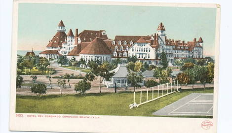 The Hotel del Coronado, located on Coronado Island near San Diego, opened in 1888 and is a National Historic Landmark. Known for its distinctive red-roofed Victorian design, it was one of the largest wooden buildings in the United States at the time of its construction.