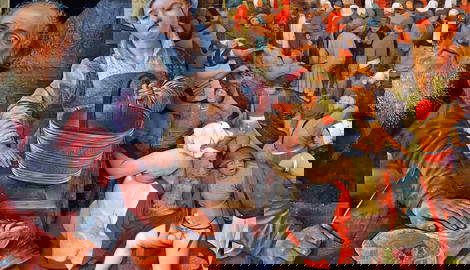 The women are also the primary caretakers in this scene, taking care of the children by holding and feeding them as the men enjoy their food and drink. There is only one example of a man in the scene caring for a child seen in the man in the foreground who is seen potty training a small child. He lifts the child clumsily by its clothing, perhaps believing that he should not be the one to complete the job of assisting the child. We can see the more typical gender roles of the Renaissance in this painting from the perspective of both men and women. The men seem to exist in this space to be served, while the women are the ones who are caring for others. These were the more typical gender roles of the Renaissance.