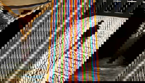 Scottish artist Jim Lambie’s iconic, iridescent ‘Zobop’ installations bring prismatic displays of color wherever they go. Inspired by his mutual passions for music and visual stimulation, Lambie’s brilliantly colored floor works are made with vastly long reams of electrical tape, which are stretched into dazzling geometric patterns across the ground. Made in an improvisatory manner on-site, they respond to the shapes and patterns of the architecture around them, sometimes covering huge expanses of floor or meandering their way up staircases. Much like his Op Art predecessors, Lambie’s art unites geometric patternswith eye-popping colors to transform our perception of space and light.
