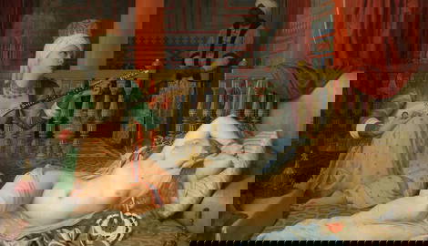 The palaces served as the main residence and administrative headquarters of the Ottoman sultans. The buildings of Topkapi are complex and rather comprise a fortified royal city. The palaces include four large courts, an imperial treasury, and of course, the infamous harem, which literally means “forbidden” or “private.” Many European artists were fascinated by the idea of this secret area that housed as many as 300 concubines and to which no outsider could have access to. Thus, when we think of the Topkapi palaces, we see an image that has vastly been created by western artists who fantasized about life in the harem. Hence, stories of libidinous sultans, ambitious courtiers, beautiful concubines, and scheming eunuchs have been conveyed, to a large extent, by western painters such as Jean-Auguste-Dominique Ingres. These stories rarely captured the reality of life at the Ottoman court. Ingres, after all, never visited the Near East.