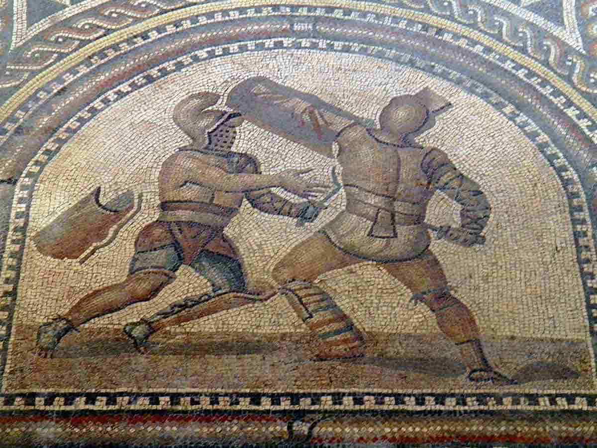 There was also a spectacle called the Naumachia, which was a mock naval battle. The arena was flooded, and the participants would fight in ships. More than likely, they would use various tactics, including conventional weapons such as swords and spears, but possibly the ships themselves, since ramming was a common naval tactic of the era.