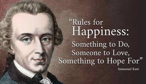 This quote from Kant is all about his understanding of happiness and gives a sense of what he reckoned were the essentials for a fulfilled or meaningful existence. These were having “something to do, someone to love,” and “something to hope for.”