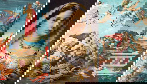 The Sistine Madonna is radically different from the rest of Raphael’s oeuvre due to the fact that it was painted on canvas. At the time, canvas had already become a popular medium for artists, but Raphael famously preferred to paint on wood. Some experts suggest that the reason for it was not only the painting’s size, but also its possible function. The canvas could be carried during religious processions and taken outdoors if necessary.