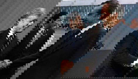 In 1972, Nixon also visited Moscow to visit with Soviet premier Leonid Brezhnev. The next year, Brezhnev returned the favor and visited Washington, D.C. This period of thawed tensions between the United States and the Soviet Union is known as détente, though its effect on the Cold War can be interpreted in different ways. The decision by China and the United States to open diplomatic relations can be seen as politically weakening the Soviet Union and isolating it after the Sino-Soviet split of the 1960s. Growing trade relations between the US and China in the late 1970s could be seen as denying the USSR a trade partner that could have kept its economy afloat in the 1980s. Today, the United States’ trade relationship with China is of tremendous economic and political importance and reveals that dollars trump political ideology.