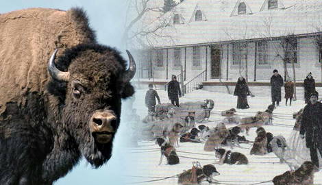 Bison herds had been roaming the North American Plains for centuries before the arrival of Europeans. First Nations depended on them for food and used their skins to make blankets, coats, hats, and gloves. They also used bison dung as fuel. Before horses were reintroduced in the mid-18th century, hunters chased bison herds on foot during the so-called Dog Days, with the help of their loyal dogs.