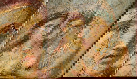 Pompeian Fresco from the suburban baths depicting cunnilingus, 1st century AD, in the National Archaeological Museum of Naples